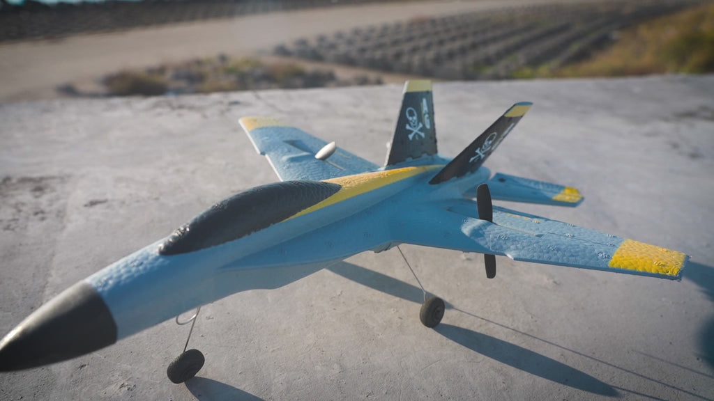 I ordered this ket off of Amazon, and I was very excited to fly it. I opened the box, and I was excited to see this jet, it looked very fun. I plugged in the batteries until they were fully charged. I tested all of the controls and it seemed like it would fly good. So I threw it up in the air, and suddenly it just peers to the left and crashes in the fence 90$ down the drain. I had not control because there is suppost to be a gyro that auto balances it, but it seems the right propeller pushed harder then the left one. There is no bindings on it so you can only rely on the gyro, and it didnt work at all. I went back home and taped it up and I went back to the park to try again, and it still flew to the left. I crashed it again because I couldn't keep it in the air for more that 8 seconds because it just wanted to turn to the left. This is the condition that it's on now and I hope I can get another one to see if the same problem happens.